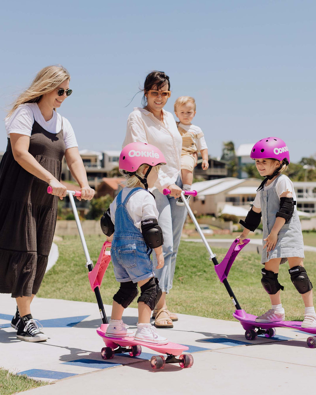 Learning to ride is both challenging and very rewarding. Making sure your little ones are protected with helmet & safety pads will help them skate safely and avoid those cuts and grazes that discourage confidence.
